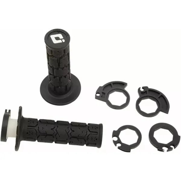 V2 Rogue Lock-On GripsODI has revamped its popular Lock-On MX Grip to make it even better The Lock-On Grip System allows you to change or replace grips in seconds without the need for any wire ties or glues Delivers slip-free performance under any conditions Simple installation and removal without waiting for glue to dry Throttle tube included with snap-on throttle cam to match most modern motocross bikes Knockout ends easily accommodate hand guards Compatible with V2 throttle cams for additional fitment options