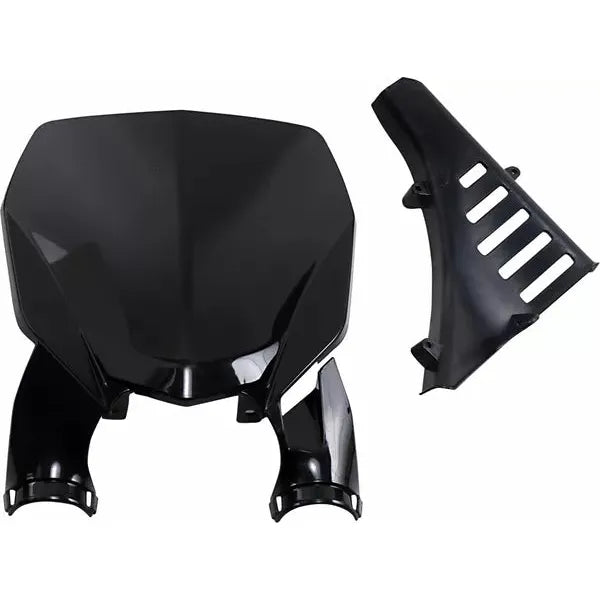 Stadium Number Plate with Fork GuardsSecures brake line behind number plate Eliminates damage to graphics and brake line accidents Protects fork tubes from roost