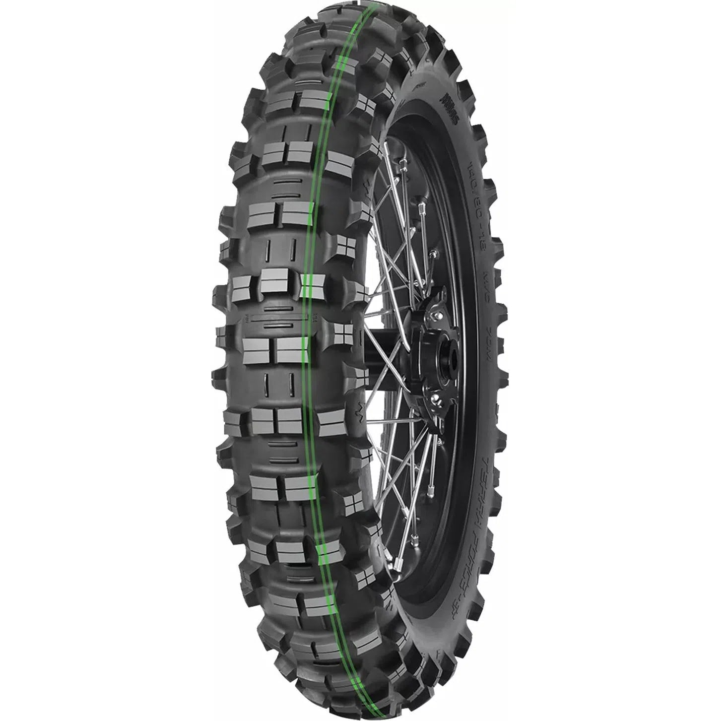 Terra Force-EF Super Soft TireDesigned for enduro FIM competition for all terrain types with best in class performance with outstanding traction, stability and resistance to wear in wet and dry conditions Light carcass construction with ultra gummy compound, especially designed for low speed extreme enduro, ideal in wet slippery conditions An ultra-soft carcass construction, making it an unrivalled choice to conquer steep technical sections and slippery rocks Features a specially designed knob design respecting FIM racing standards Identified by the characteristic double green stripe which combines the super light carcass with Mitas gummy compound for low speed; highly technical racecourse use only (i.e. extreme enduro only) Tread designed for optimum performance in hard, rooty or challenging conditions requiring maximum footprint Competition tire for use on enduro & dual sport motorcycles (20/80 road to dirt dual sport application) Replaces EF-07. Junior/Mini fitments available.
